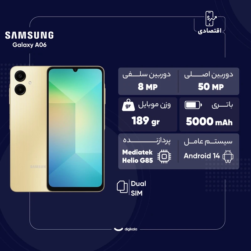 موبایل سامسونگ مدل Samsung Galaxy A06 دو سیم کارت ظرفیت 64 گیگابایت و رم 4 گیگابایت