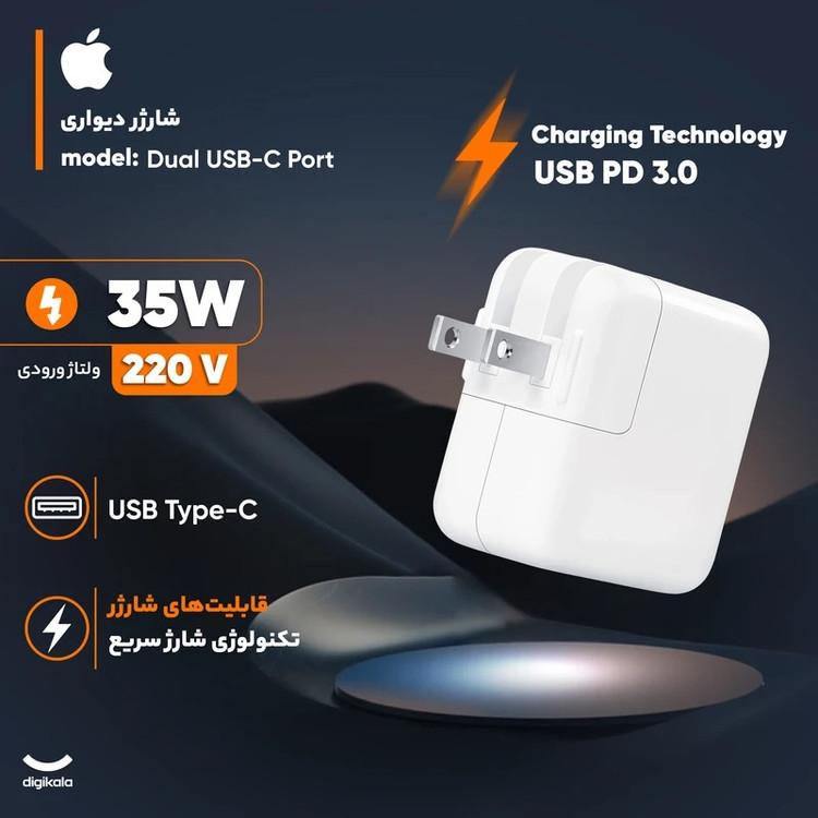 شارژر 35 واتی اپل دو پورت Apple 35W Dual Usb-c Port