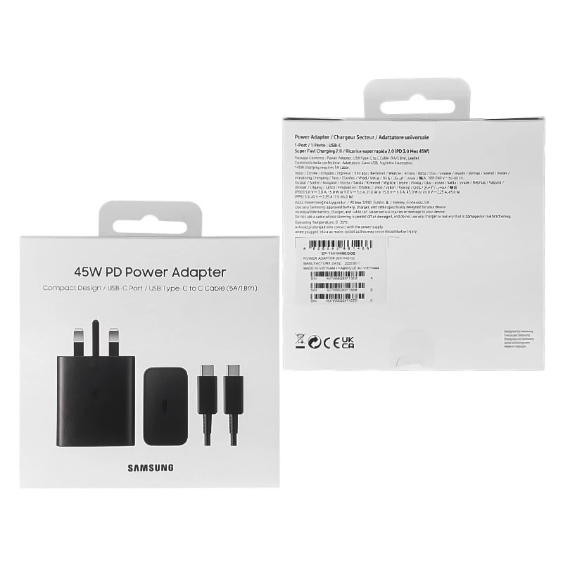 Samsung 45W Wall Charger Model EP-TA845 with USB-C Conversion Cable